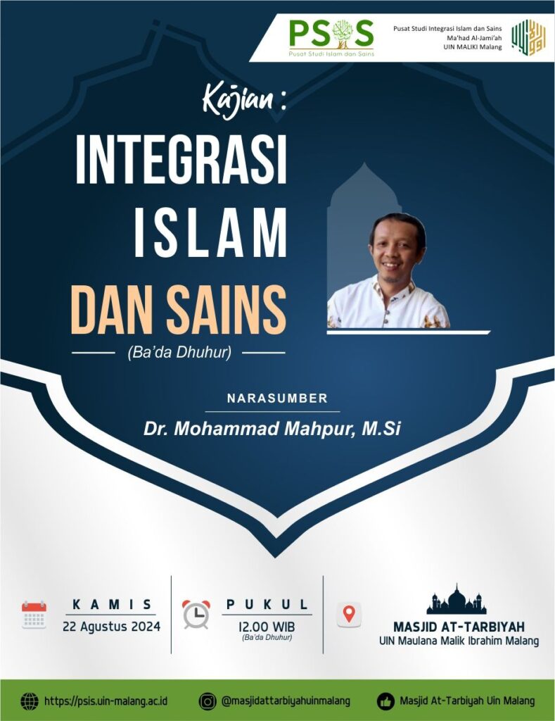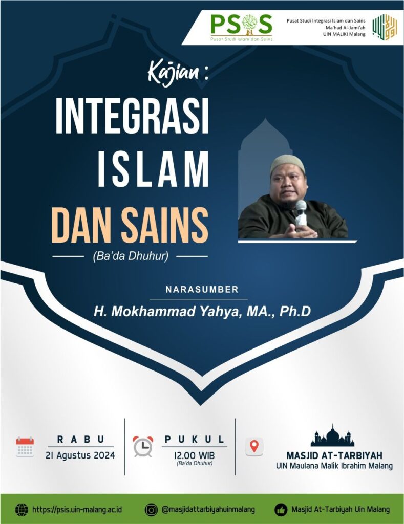 Bapak/Ibu, Monggo untuk hadir sholat dhuhur berjama’ah dan menyimak kajian Integrasi Islam dan Sains di Masjid At-Tarbiyah setiap hari senin sampai kamis.