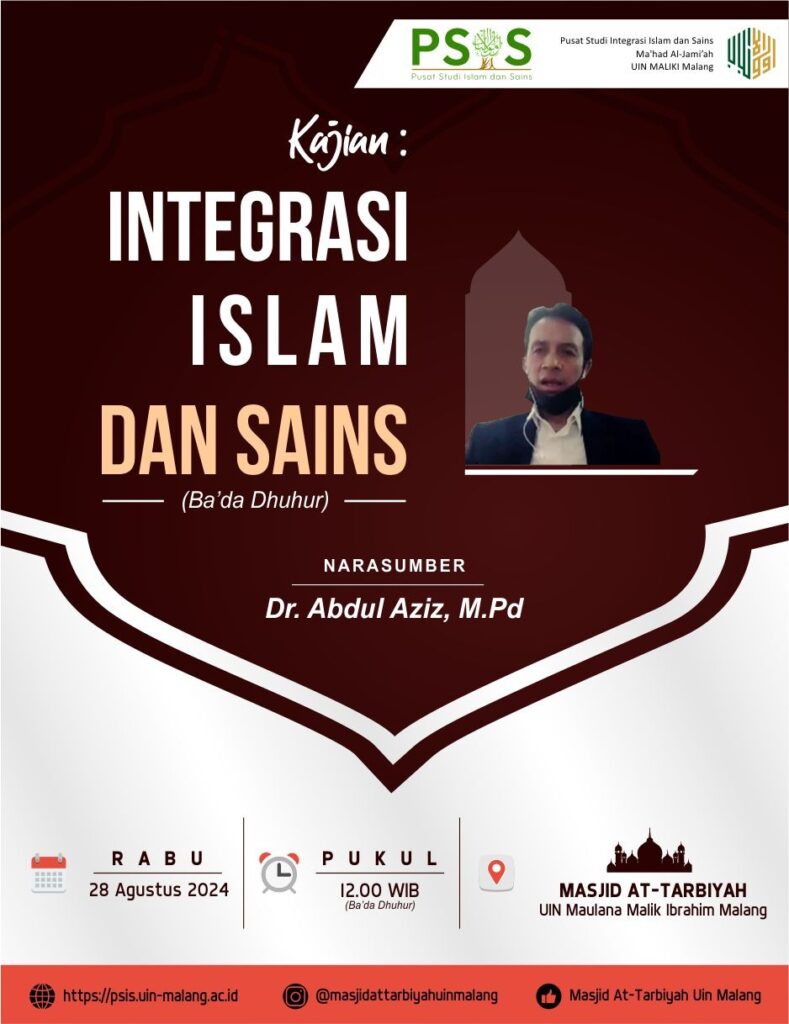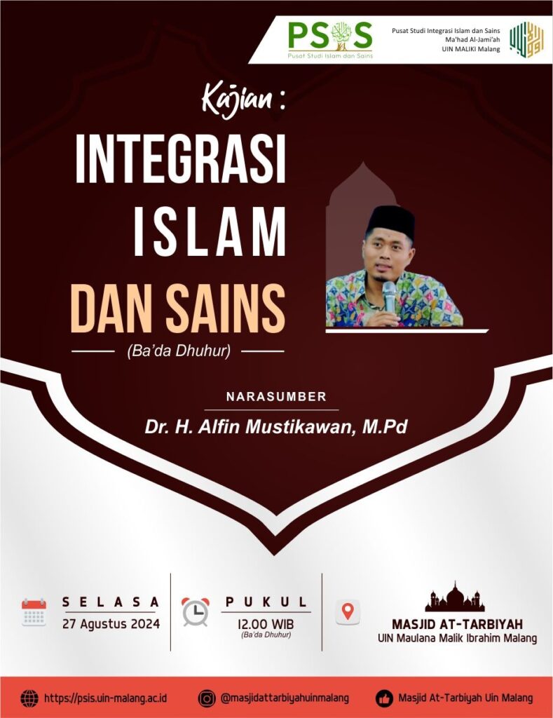 Bpk/Ibu, Monggo untuk hadir sholat dhuhur berjama’ah dan menyimak kajian Integrasi Islam dan Sains di Masjid At-Tarbiyah setiap hari senin sampai kamis.
